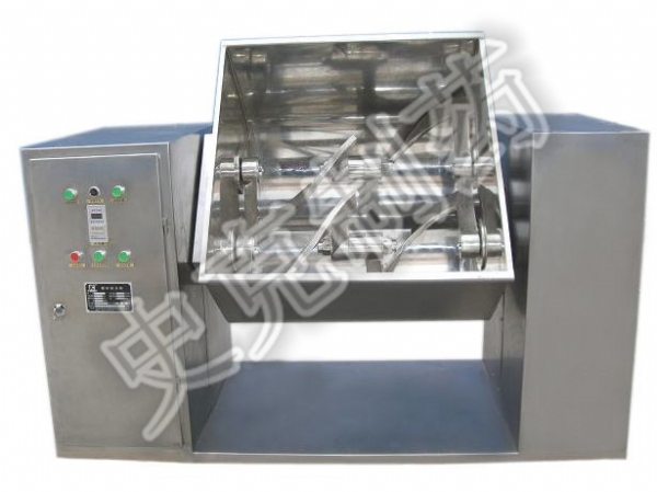 槽型混合機通過機械傳動,使S式攪拌漿旋轉(zhuǎn),推動物料往復(fù)翻動,均勻混合,槽型混合機操作時采用電氣控制,可設(shè)定混合時間,到時自動停機,從而提高每批物料的混合質(zhì)量。